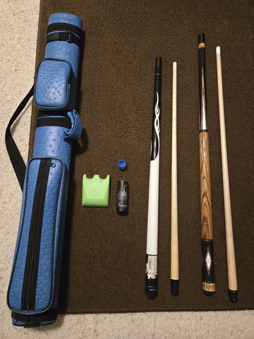 Pool stick 1 Action JR 17 oz. Pool stick 2 Elite EP33 190z. With Blue Action case and accessories. Great condition! Price Reduced! Make a reasonable offer!