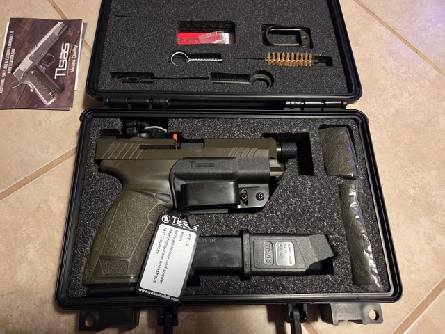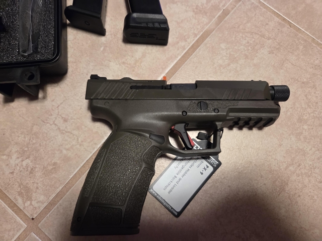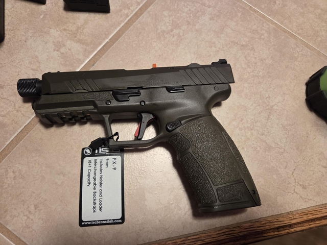 Tisas 9mm threaded barrel. PX-9 Brand new never fired. Olive green. $450 OBO. Message Eric at six two zero 282-1844.