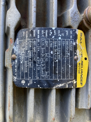 Baldor 15HP Electric Motor, 3phase, 1 5/8" shaft.