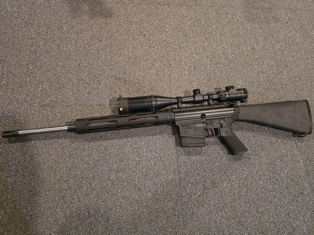 Has an X-Caliber barrel JP upper and DPMS lower. Scope not included.