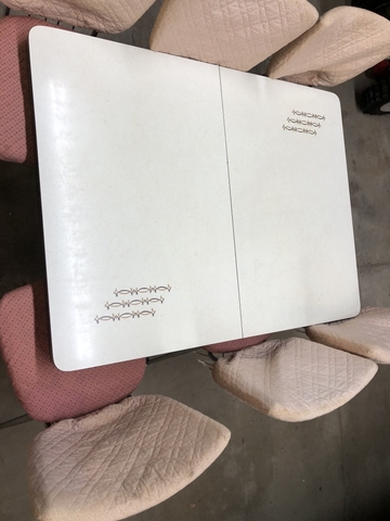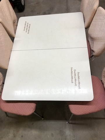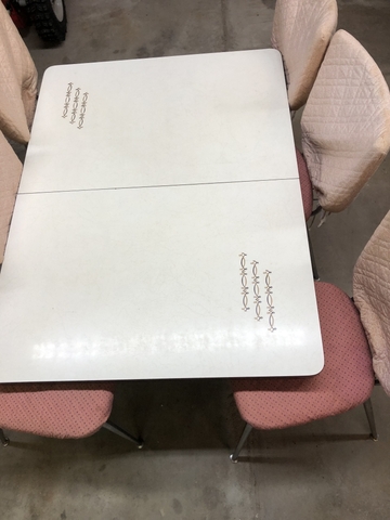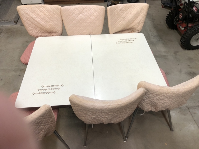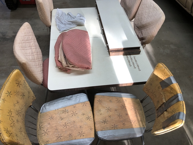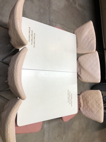 Dinette table with 2 leaves 6 chairs chairs rough with covers table in good shape