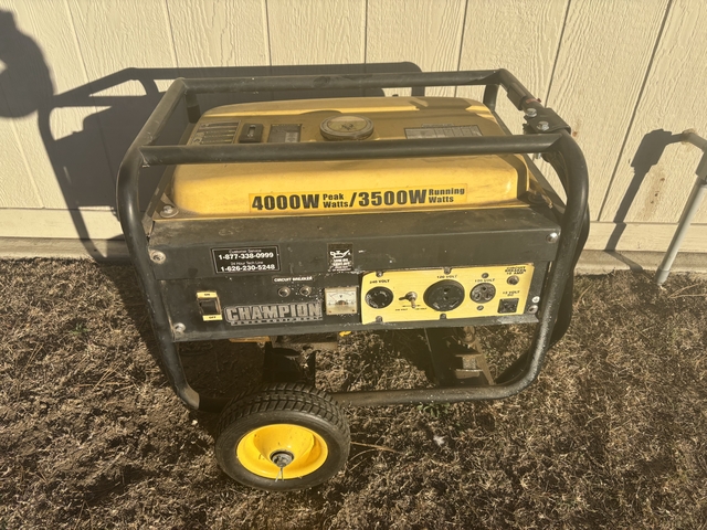 3500 watt Champion gas generator. Fuel gauge, wheels and handle. Pull start. Used very little.