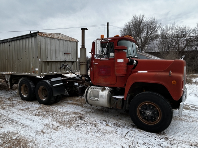 1984 Mack R686ST. Mack EM6-300R Engine, Mack 9-Speed Manual Transmission, Air Sliding 5th Wheel Hitch Plate, Dual Aluminum Fuel Tanks, Day Cab, Air Brakes, Air Ride Cab, Air ride seat in great condition. Manual Windows, block heater. 11R22.5 Firestone Tires