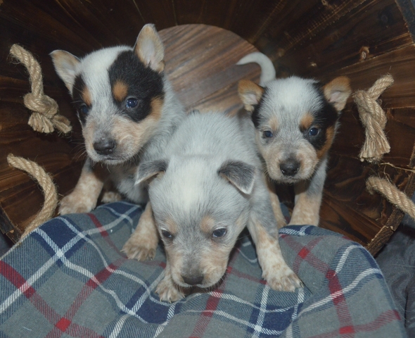 These are out of aggressive working dogs, not town pets! They are 4wks old now. Will be 8 weeks 1/22/26 with 3 rounds for shots, de-wormed, vet checked and micro-chipped. As of now I have 2blue females $500, 1red-1blue males left $400. These are Kuck Grandbabies so will be small, great one person working dogs ! Don't Miss out not sure how many more litters Little S-Kat has in her. Located at Sylvia Ks, No Shipping, 620-727-0998 call or text. I require a half down deposit to hold pups.
