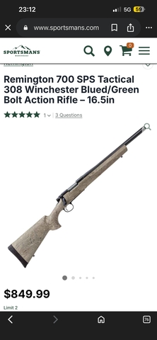 Low round count Remington 700 SPS tactical 308, 16.5" barrel threaded 5/8x24 with factory hogue stock Also comes with an included FDE Magpul hunter stock that has been bedded for this rifle, willing to sell together or seperate. Only selling due to having multiple 308's and wanting to fund a different build. Asking $750 obo with the magpul included, might be open to trades. Interested in rifles or bare bolt actions, and shotguns. Message on here or text 620-Two77-Six250.
