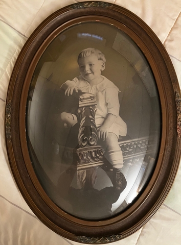 As stated measurers about 17"x23". Very good condition for it's age.. The little boy appears to be about 1-2 yrs old?