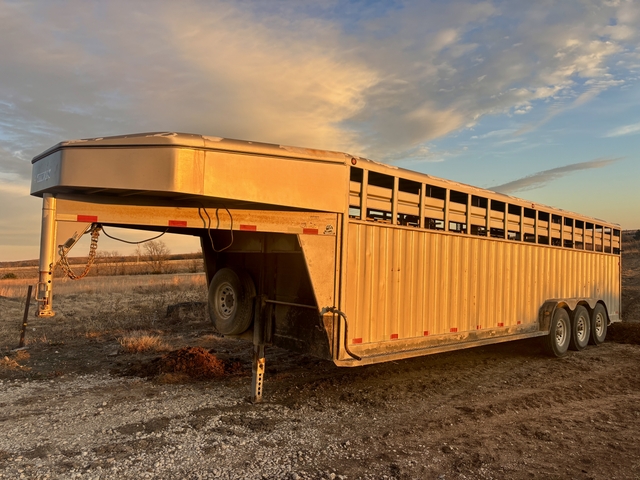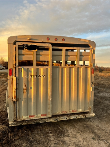 Titan rancher stock trailer.2012. 7.5' x 28' with a 52" side door. Trailer has 3 gates slider on 2 of them. 14 ply steel belted tires. 4' composite tread on the back portion. It has the usual Titan paint fade on the roof. The brakes need some new wiring. Trailer pulls good. Will post more pictures once it is washed up a little. Call email or text. 6two0-75five-5222.