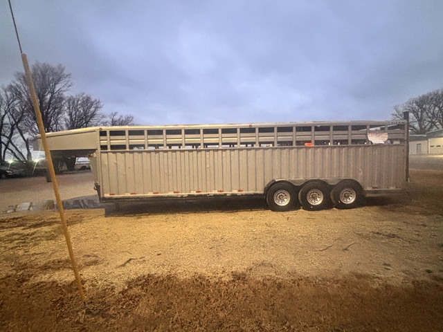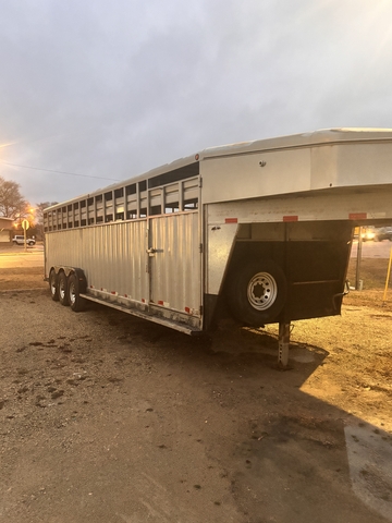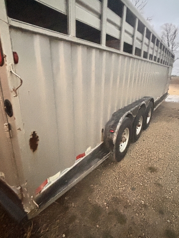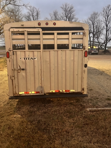 Titan rancher stock trailer.2012. 7.5' x 28' with a 52" side door. Trailer has 3 gates slider on 2 of them. 14 ply steel belted tires. 4' composite tread on the back portion. It has the usual Titan paint fade on the roof. The brakes need some new wiring. Trailer pulls good. Call email or text. 6two0-75five-5222. Can meet if needed.