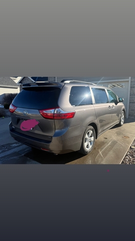 2017 Toyota Sienna van-bought brand new in 17'. Currently has almost 185600.00 miles. Never been wrecked. Has 2 brand new tires and a new battery. Both in November. Has 8 seats. Middle seat easily comes in a out and stores in the side of the trunk. Has been an amazing family vehicle for almost 8 years. Lots of space and lots of trunk space. Has a cracked windshield and some dings and scratches. Text me for more info. Located in Hays. 785-650-8271