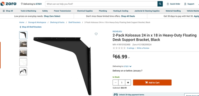 Kolossus 24 in x 18 in Heavy-Duty Floating Desk Support Bracket, Black