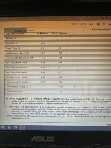 2025 feed had some rain but still green. Bales weigh around 1400 and have 4 wraps. Feed tested medium in nitrates with results in pictures. Have fed plenty to my cows and never had a problem. $75 a ton can load 6209107052