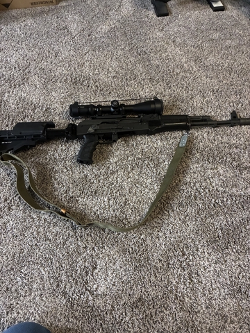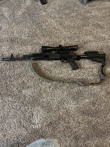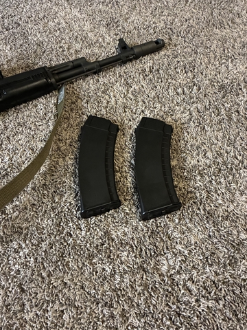 Ak74 rifle, folding stock, vortex viper scope, 2-30 round mags, bayonet, sealed Tin of ammo