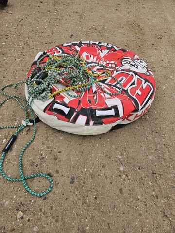 Tube with tow rope and harness.