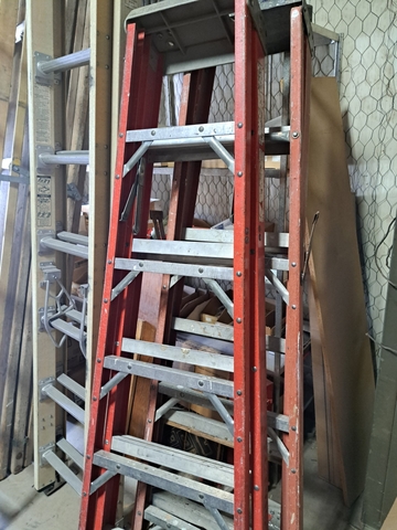 Updated sizes I was wrong before on these & checked with my dad on them -2- 6 Ft - Red $ 40 each, 1- 8 ft yellow $50, 1- 10 ft yellow $60 1- 12 ft- silver $75 Aluminum ladders, 1- 24 ft Fiberglass Ladder $250, 785-821-4371 in Goodland. See my other listings