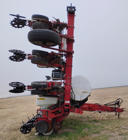 For Sale: White/AGCO 8122 12R30 vertical fold planter, ground drive, 2 bu. Boxes, (2) 200 gallon fertilizer tanks, electric fertilizer pump, keeton seed farmers, dual spiked closing wheels, all drive chains were replaced before 2025 planting.