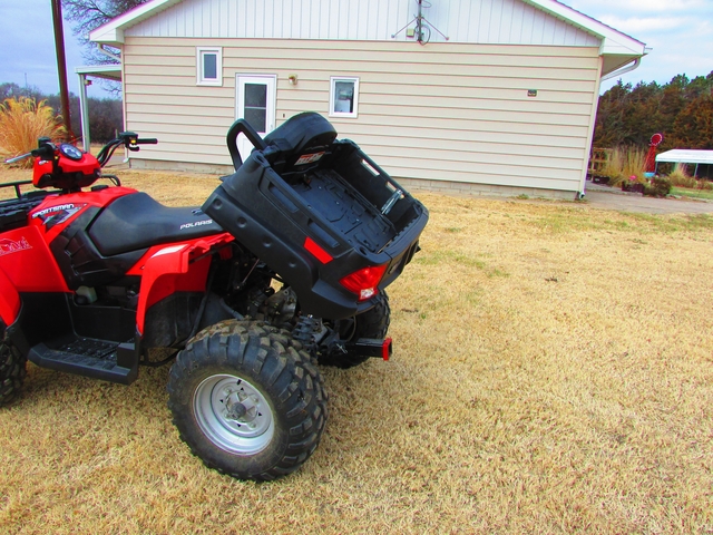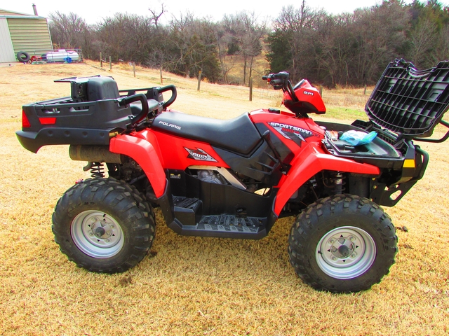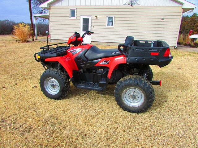 I bought this used on 06/15/2013. It had 545 miles on it. It now has just over 2600 miles on it. I have only used this for riding around town and touring the trails. It has Never been used on a farm or ranch. I have service records, the owners manual and a service manual. It is a rare model since it also has the dump box. Seats two comfortably, and you can put the seat down when no passengers are with you. Comes with an adapter so you could pull a trailer if you wanted to. I only pulled a little garden cart around with it. Only selling because I have a Side x Side and I use it all the time now. It is also a Polaris. Selling with an oil change kit which includes the oil and filter. This is a very nice 4 wheeler. Look at what dealers are asking for used up 4 wheelers with tons of miles. I think I am asking a fair price. Web site only allows 6 pictures or I would show in more detail how the buddy seat works. $6,000.00 OBO Located just outside Prairie View Kansas. Do not reply on this site. I do not check it very often.You can reach me on my cell phone which is 402-760-1905.
