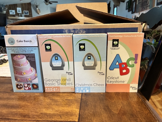 Original Cricut machine with four cartridges, some paper and vinyl and miscellaneous stencils. Text message 785-543-2753