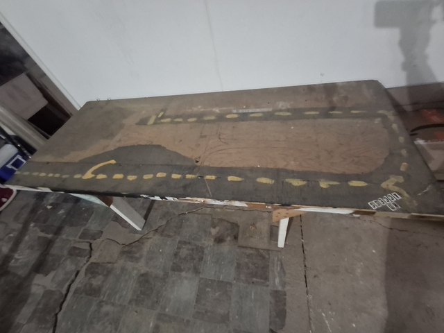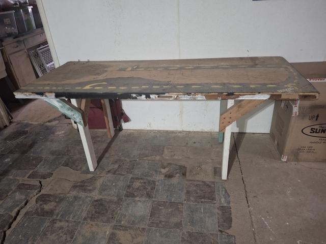 Table was stored in garage when we bought our house. We don't need it. Measures approximately 78" wide by 32" deep by 31" tall. Must be picked up in Oberlin.