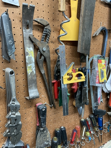 Quickly organize your tools with this vintage peg board. You can buy the pegs at Home Depot, or other hardware stores.