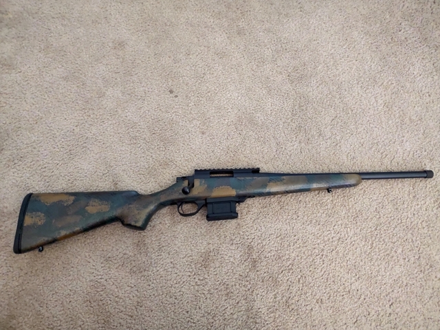 Howa 1500 in 7.62x39, has 16.5" threaded barrel, 20 MOA rail, and carbon fiber stock. Very handy lightweight rifle.