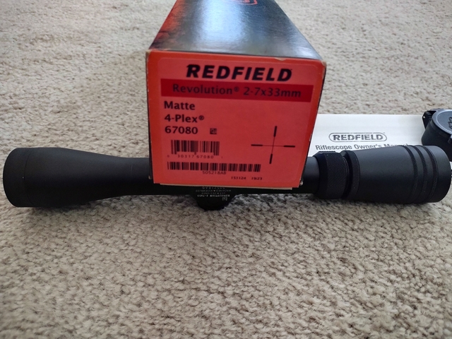 Redfield Revolution 2-7x33 scope with Butler Creek scope caps. In excellent condition. $200