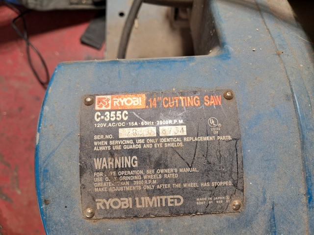 14 inch chop saw. Works great but have a bigger one. $50. For more information contact Kevin at 785-259-7497