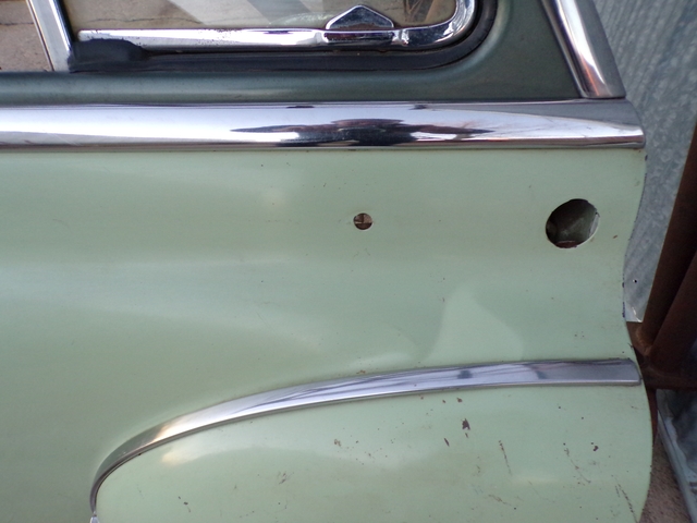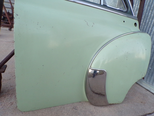 Left rear door from 49 - 50 Chevy 4 door sedan. Rust free and stored indoors since the 70s. Door glass is cracked. Call 6206176644 emails & texts are usually ignored as a scam.