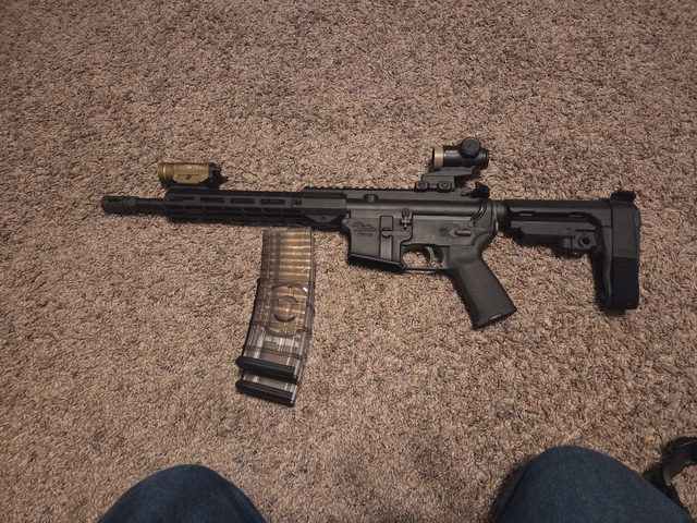 I have a like new AR pistol for sale. The Upper is from Aero precision with a 11.5 inch barrel and their Atlas handguard. The lower is from Anderson arms and has a pistol brace attached. The pistol is chambered in 5.56×45 Nato and comes with two magazines a light and optic. Price is 500.00 cash and will need to be transfered upon purchase which I will cover the cost. Text me at 7858191574.
