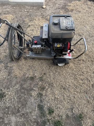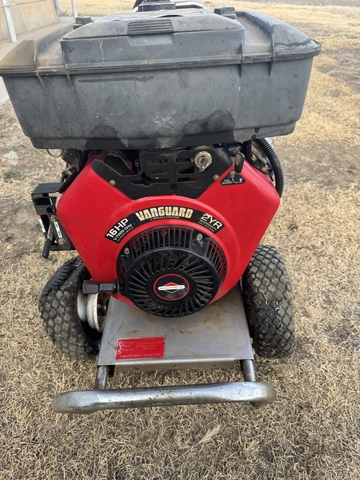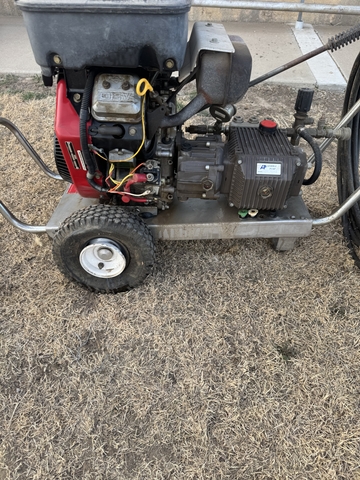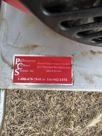 Professional cleaning systems pressure washer. Admiral pump 16 hp v twin engine ran when stored last year. Might need carb cleaned. Have not tried to start it. Bought a hotsey do not need it any more.