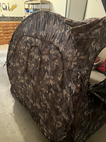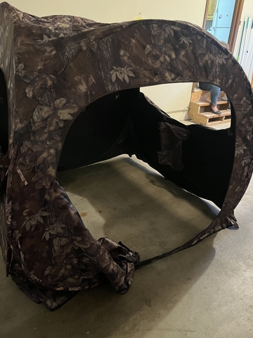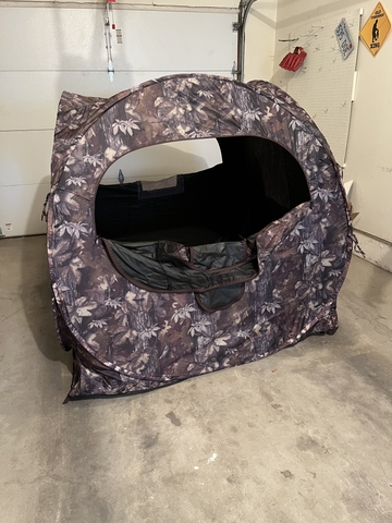 Instant pop up hunting blind. Only opened for these photos and one time when first received. All zippers work no tears or rips.
