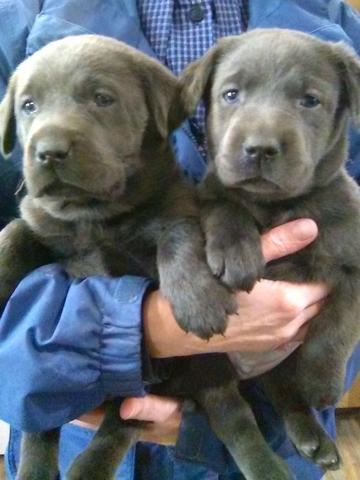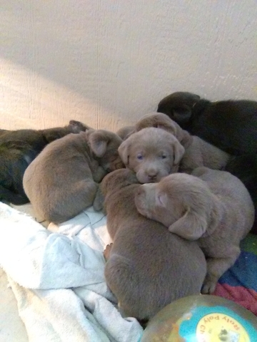 We have puppies. Two available. Silver and charcoal. Eight weeks old. They are ready to go. Puppies will be well socialized, and up to date on vaccinations and worming. The parents have the soundness, natural ability, and personality that is the breed standard. They are akc registered and hips and elbows good. They are pets.