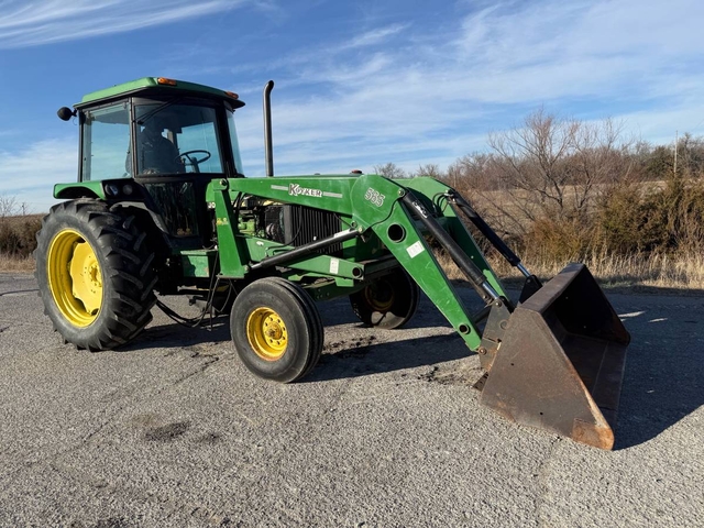 97hp, 16-speed Hi-Low range transmission, 3pt, dual PTO and dual hydraulic remotes. The cab has heat & air. 565 Koyker loader with quick-attach bucket. This tractor runs and drives good but the AC compressor is missing the belt. Everything else seems to work good. Shipping is available anywhere in the United States. Please call us at 620-736-2038 for more information or to come look at it. Also, please visit our website at www.riggstractorcompany.com to view our current inventory.
