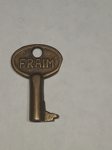 This is for a VINTAGE FRAIM Brass Hollow Barrel Skeleton Key FOR PADLOCK Marked. ONE SIDE IS MARKED FRAIM. THE OTHER SIDE IS MARKED R236