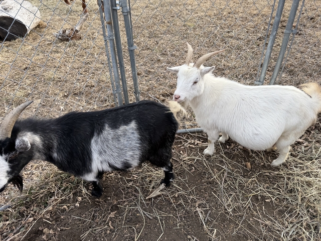 Two pigmy mommas for sale. They are sisters and 5 years old. Have had 2-3 babies every year (one year we had quads!). Super friendly. Broke to a collar and leash and even used at church petting zoos and living nativity. The white one should be due in a few weeks with likely a set of triplets, black and white will be a little later than that. Both have had plenty of milk to support triplets on their own. Happy to send pictures of past babies. They are always absolutely adorable! My kids have had a great time with them but we are wanting to focus more on Boars for 4-H. Guessing you will have 5-6 babies that will sell for $75-$100 each out of them very soon.