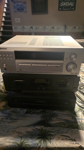 Pioneer stereo receiver, phillips dual cassette player, and phillips 5disc carousel cd player