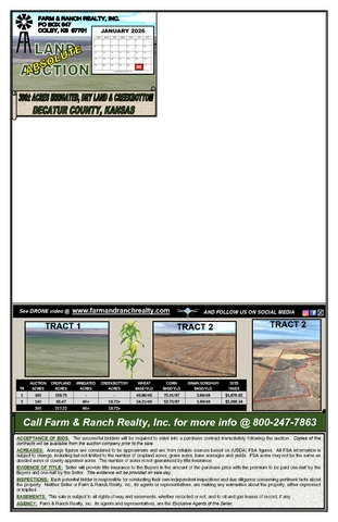 LAND LOCATION: From the intersection of Hwys 36 & 83 at Oberlin, Kansas, go 10 miles south on Hwy 83 to I Lane, then 5 miles west to the NE corner of Tract 1. See location map for Tract 2. SIGNS WILL BE POSTED!