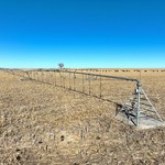 TRACT#2 has two pivots and three irrigation wells, with the north pivot in alfalfa and the south pivot in corn stalks. This 140-acre tract offers abundant hunting opportunities with the creek running thru the property.