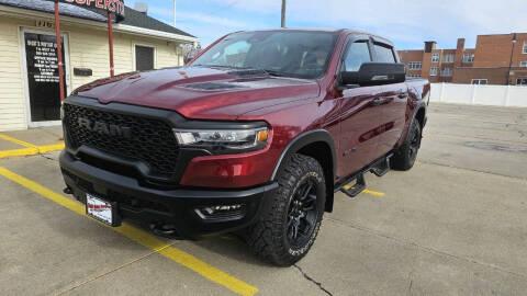 2025 RAM 1500 CREW REBEL 4WD 3.0L 6CYL TWIN TURBO- "ONLY 3K MILES" PWR HEATED BUCKET SEATS- NAVIGATION- OFF ROAD PKG- REMOTE START- DUAL CLIMATE- SIRIUSXM RADIO- PREMIUM STEREO- BACKUP CAMERA- PARKING AID- DRIVER SAFETY PKG- BLUETOOTH- LOCKING/LIMITED SLIP DIFF- PWR FOLD HEATED MIRRORS- FOG LIGHTS- MUD GUARDS- BED COVER- SPRAY IN BEDLINER- PWR RELEASE TAILGATE- TAILGATE STEP- TRAILER BRAKE CONTROL- ALLOY WHEELS- TOW PKG! STOP BY, OR CALL 308-384-2554 ASK FOR DAN! Visit dicksmotorcompany.com