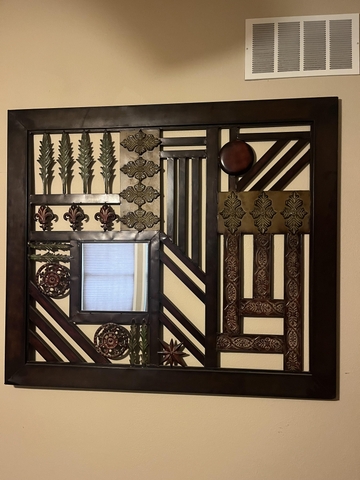 Have a nice metal wall hanging with a mirror in it. 47"x55".