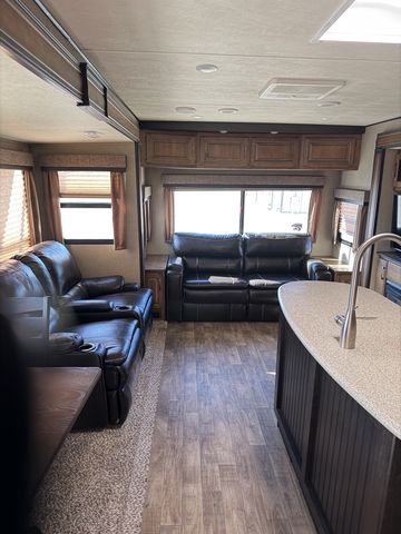 38 ft 4 season travel trailer for sale. 3 slides, 2 AC units, washer/dryer hookup and 2 power awnings. Well maintained and stored inside. Tires are year old with less than 900 miles. Stabilizer hitch attachment goes with it, extended warrenty can transfer if wanted. Any questions call 785-259-5137 Price is somewhat negotiable. Will only respond to serious inquiries!!