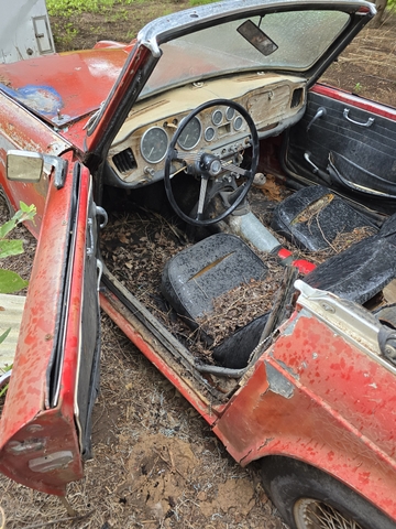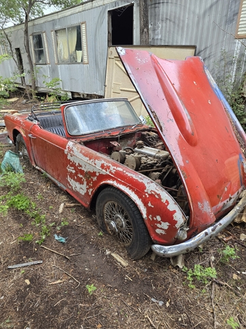 This is a classic Triumph car for sale. Needs a complete restoration if desired to do so. Basically selling as a parts car because its rough shape. It did run before parking.