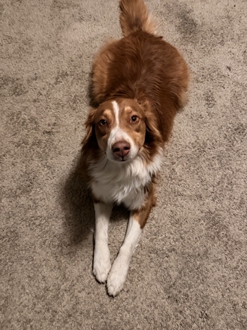 Aurora is a 2 year old female. She has been spayed. Is due for her distemper. She goes to Larned Veterinary Clinic.