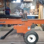 This is a homemade log splitter with a gas motor.