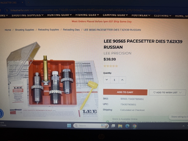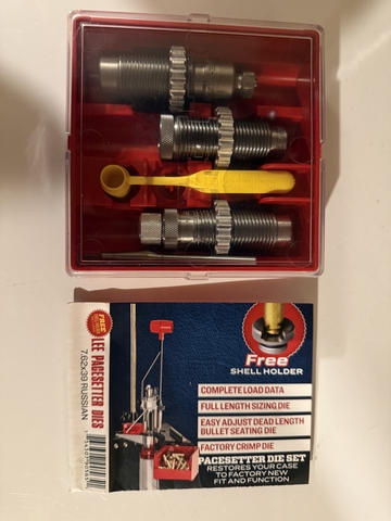 Lee pacesetter dies 7.62x39 Russian mostly new. I got it in a trade and don't re-load. Missing the shell holder which come free with package.
