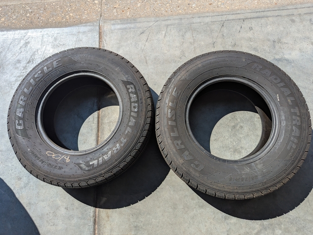 Two good trailer tires ST225 75 R15 like new tread depth 8/32". $75 obo.