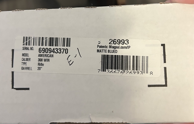 New Ruger American 308 rifle new in box. Never been shot.