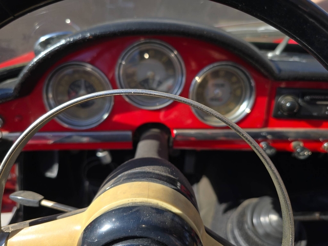 Lot #203 - 1962 Alfa Romeo Giulietta Spider Normale featuring a red finish, convertible soft top, and removable hardtop. Highlights include a classic Veglia instrument cluster, black interior with contrasting red piping, and a rear-mounted spare tire. Powered by a 1,290cc inline-four engine mated to a 4-speed manual transmission. This vehicle was driven regularly on the weekends always garage kept but has been setting four several years due to illness so we'll need some work to get running batteries. New fuel etc...
