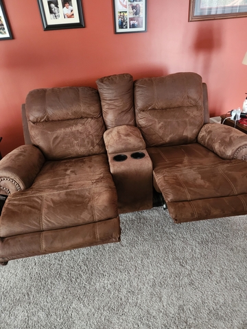 From Ashley Furniture Mart. Sofa, electric reclining, loveseat electric reclining and oversized chair, manual. Pick up in Abilene. Still a very nice set, no stains or tears. Micro-fiber, easy to wipe down. Smoke free home. $1200 OBO
