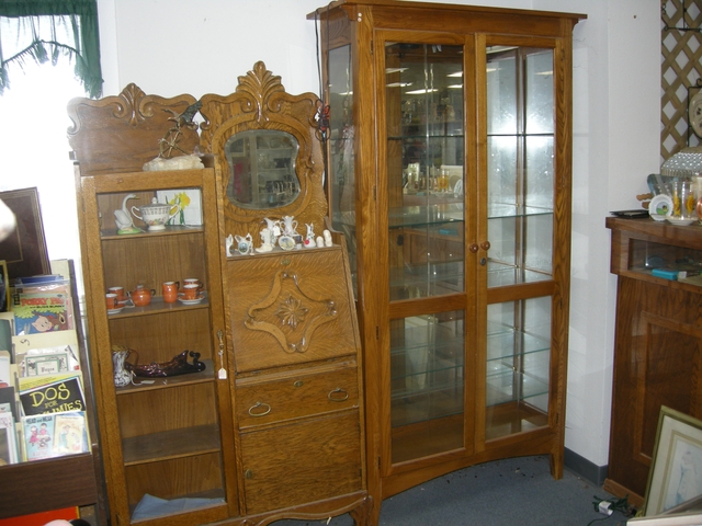 Square oak curio cabinet
