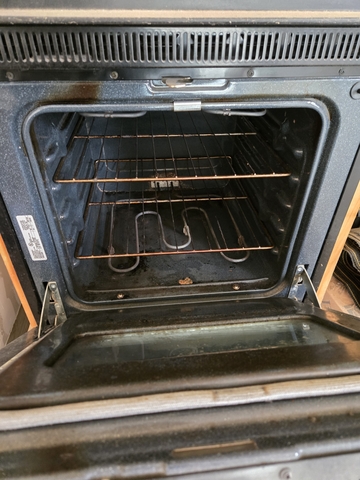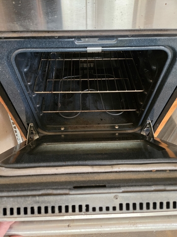 Small dent in face but works good. replaced when we remodeled the kitchen and don't need it anymore.